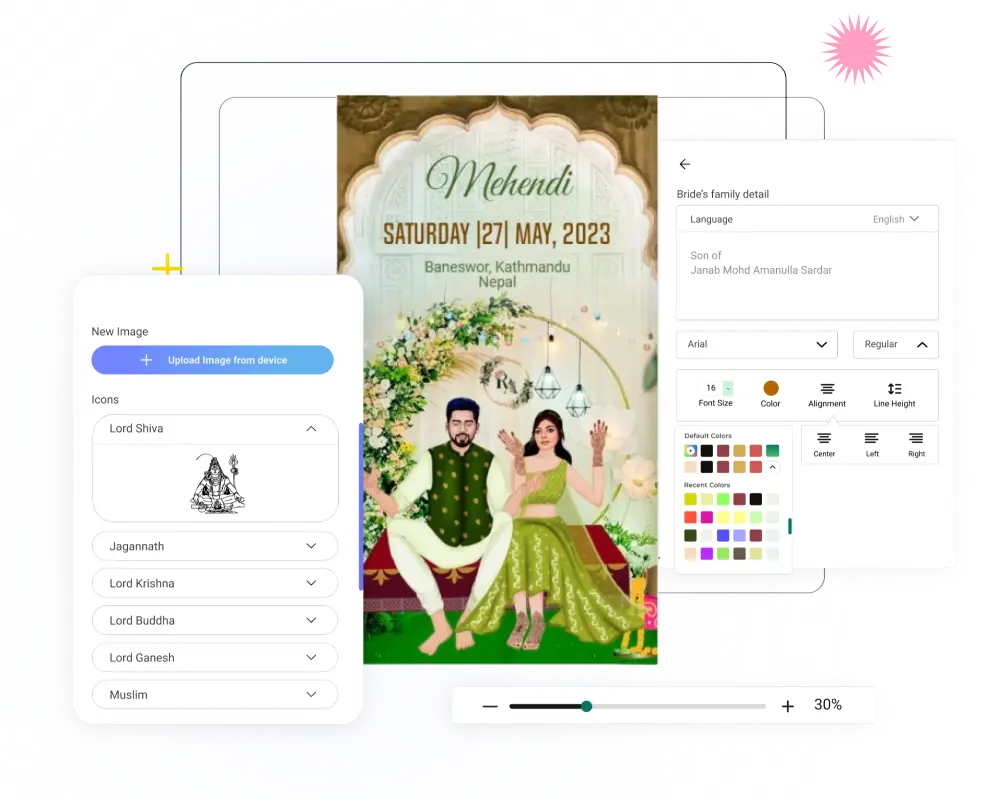 Absolutely! You can make e-invites videos in many languages. Simply write in the whatsapp language, and our system will automatically translate it into your selected language for the card. It's easy and convenient!